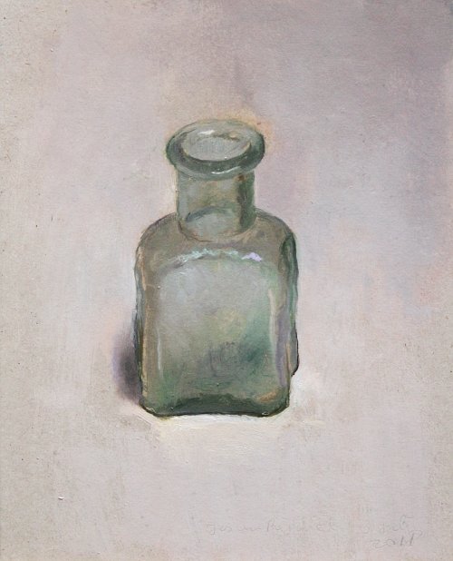 I did a small demonstration today, resulting in this quick painting of a Roman bottle (at least it looks Roman). Painted on cardboard...
